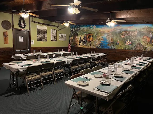 More About Banquet RoomThe Willo Steakhouse, born as a bar in a Quonset hut, stands at a rural crossroads with that classic roadhouse look, including a neon “DINING” sign nailed to a tree trunk.